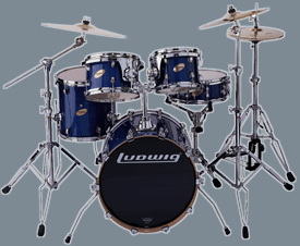 Remo-kalvot, tukevat 300-sarjan telineet. Bassorumpu: