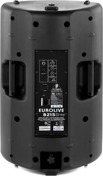 Behringer Eurolive B215D - active 15" + 1.35" full range speaker system, 550W bi-amped, class D amplifiers, 55Hz-20kHz, Sensitivity 95dB, 70° x 40°, 2-band EQ, 35mm speaker stand flange. Dimensions: 695 x 440 x 335mm. Weight: 23kg;