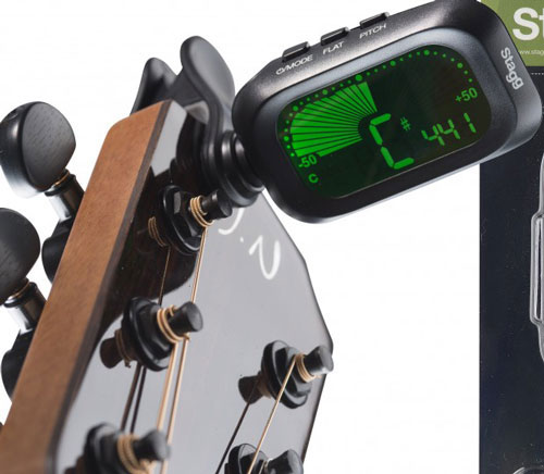for guitar, bass, violin, ukulele C & D and chromatic tuning - Compact and lightweight design - Accurate and easy to use - Securely attaches to all guitar headstock or other flat instrument surfaces - Tuning range: A0 (27.5Hz) to C8 (4186Hz) - Precision: ± 1 cent - Normal & flat tuning (b & bb for guitar) - A4 pitch calibration: 430Hz - 450Hz - Rotating clip for easy view and operation - Clear LCD display w/ 2-colour backlight - Built-in vibration piezo sensor - Auto power shut-off when not in use - 3Vdc button-cell battery (CR2032) included - Size (W*D*H): 64*36*16/ 45 mm/ 2.52*1.42*0.63/ 1.77 in. (w/clip) - Net weight: ca 32g/ 1.12 oz (battery included).