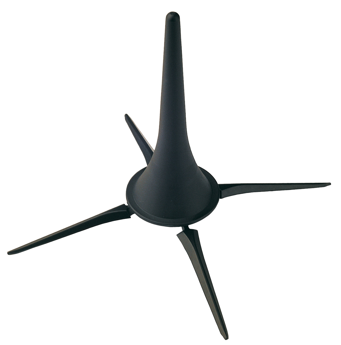 Unique, compact clarinet stand with black plastic peg which fits all current models of clarinets. The 4-leg base provides maximum stability for the instrument. The detachable metal leg base screws into the peg so that the entire unit can be stored in the bell of the instrument. Very handy!