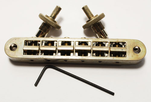 This is the new locking version of the standard Tune-O-Matic bridge that secures solidly to your guitar and won't come loose or fall off when the strings are off. This TonePros System II bridge is the same that you will find installed on the top new guitars direct from the factory and will look identical to your stock piece because it's made from the actual OEM bridge used on your guitar, but the new version locks in solid creating perfect intonation and singing sustain. You won't believe the difference, and you will never go back! This model fits your Gibson Les Paul, SG, 335, as well as most other USA made guitars. Important dimension: bridge stud diameter - 4 mm, smooth top / bridge center to center spacing - 2.93 in. / Saddle spacing - 10.4mm
