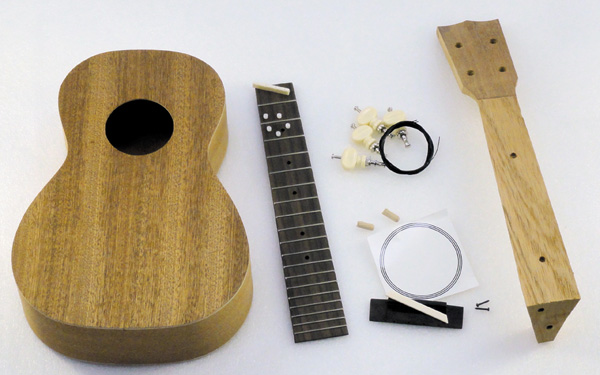 Concert Ukulele Kit with completed mahogany body and featuring solid rosewood fingerboard
