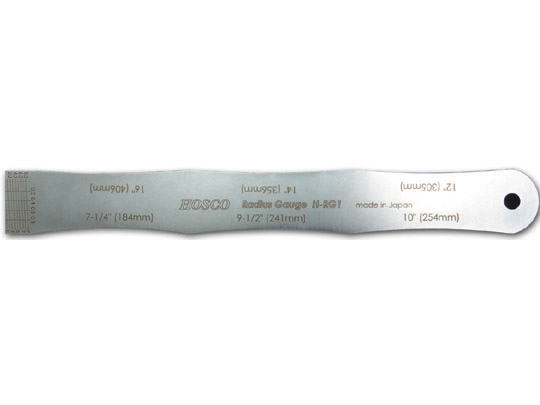 Fingerboard Radius Gauge.Hosco original radius gauge is a ruler shape.6 different major radius,7-1/4",9-1/2",10",12",14",16" are in one.And it has 10mm scale for string height and can check 0.20mm step by our unique scale desing.200mmX24mm size with hanging hole.So it is easy to keep in your workshop or install your work box.It is a real "must-have"item!