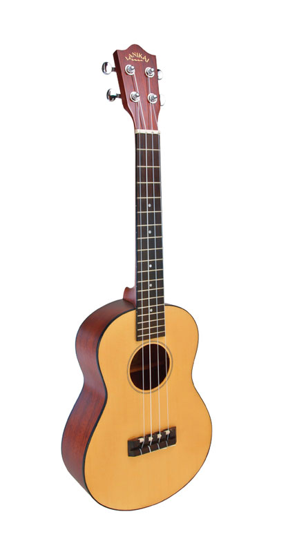 The Spruce series by Lanikai offers a supple mellow tone that can provide a strong foundation for any songwriter. With its solid spruce top and mahogany back and sides has incredible projection for those late night jam sessions on the beach. Die cast tuning machines ensure long hours of stress free strumming. With the easy playability, and included instruction booklet written by Mary Lou Dempler you will be playing in a matter of minutes.If you have never played ukulele before get ready for a world of fun. The ukulele is an addicting instrument that can and will be taken everywhere. The standard tuning on a Soprano, Concert, and Tenor ukulele is GCEA, and on a Baritone DGBE. If you can play one ukulele you can play them all! Pick up a Lanikai today and see why people are saying Lanikai Makes Me Happy!