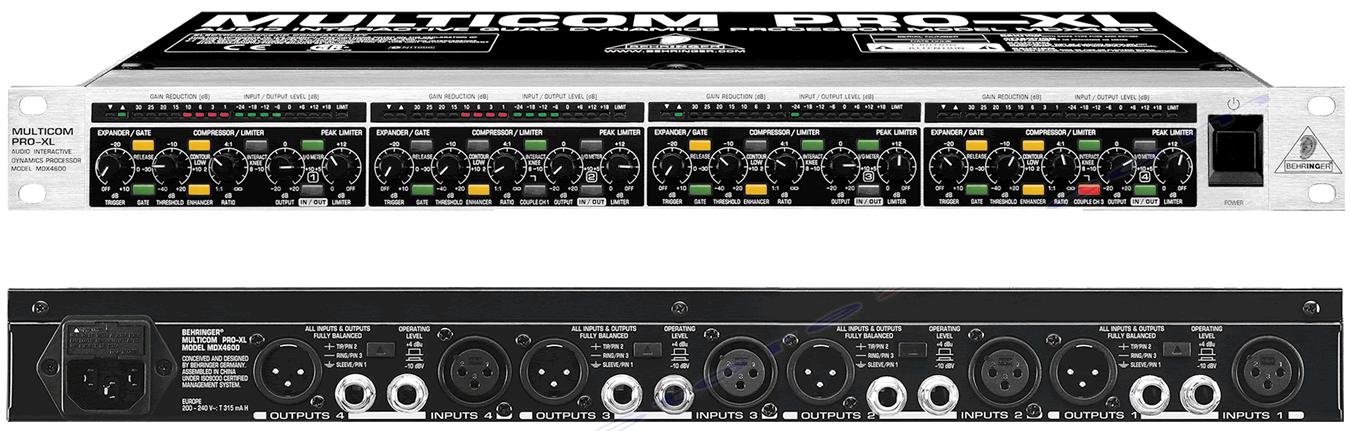 Behringer MDX4600 Multicom Pro-XL - reference class 4-channel expander/gate/compressor/peak limiter with dynamic enhancer and low contour filter, balanced In- and Outputs with 1/4" jacks and XLR connectors, Dimensions: 44,5 x 482,6 x 217,0 mm, Weight: 2,25 Kg, 19", 1U