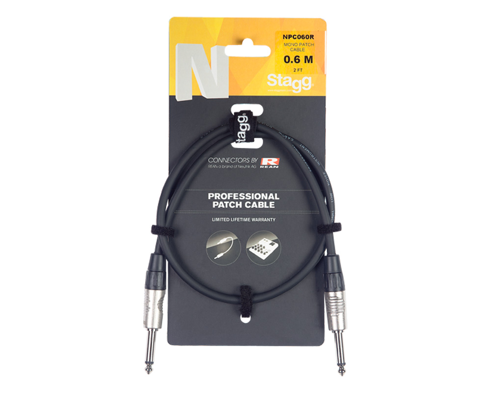 N-Series Patch Cable - Mono Phone Plug / Mono Phone Plug - with deluxe REAN connectors - ROHS compliant- 60cm / 2ft. - diam: 5mm - colour: black.