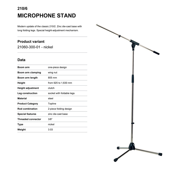 MIKROFONITELINE K&M 210/6 NIKKELI