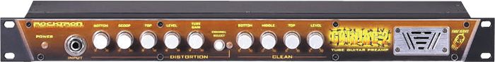Featuring the most effective EQ section ever devised, the Gainiac allows over 30dB cut, or "scooping" of the midrange used with the bass (Bottom control) and treble (Top control) as needed by your cabinet. Guitar tones just can't get any heavier. ( In the Gainiac 2, Rocktron has improved the mid scoop on the distortion!) Back off the Scoop control and your sound rolls up into a much fatter, rounder sound. The Gainiac 2 adds three band EQ to the clean sound as well and the clean sound now runs through the tube for more warmth!