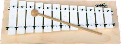 Metallophone, 12 white chimes 20 x 2 mm accurately tuned, c3 - g4, on wooden board, in coloured box
